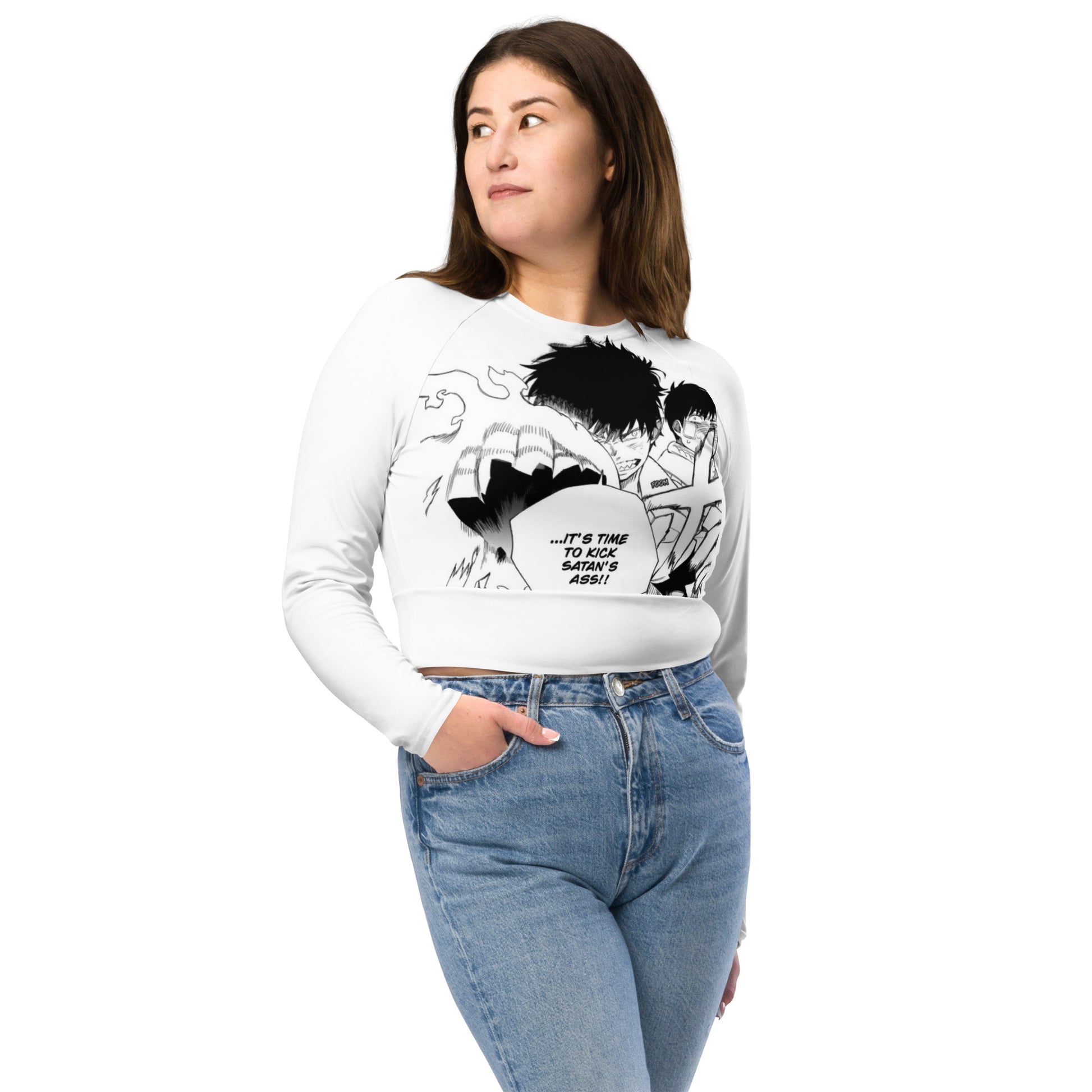 Kicking Satan's Ass Recycled long-sleeve crop top